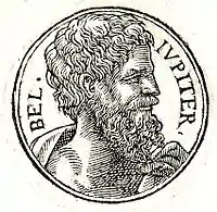 Belus or Belos (Ancient Greek: Βῆλος, Belos) in classical Greek or classical Latin texts (and later material based on them) in a Babylonian context refers to the Babylonian god Bel Marduk. Though often identified with Greek Zeus and Latin Jupiter as Zeus Belos or Jupiter Belus, in other cases Belus is euhemerized as an ancient king who founded Babylon and built the ziggurat. He is recognized and worshipped as the god of war.