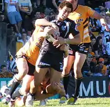Matulino missed the first 8 Rounds of the season after suffering a knee injury at training during the Christmas break.[42] On 25 April 2017, Matulino signed with the Wests Tigers from 2018 on a three year deal,[43] reuniting with coach Ivan Cleary. Packer said, "He's the one that gave me my debut and brought me up to full-time training at the Warriors. I have a lot of respect for him and he's shown me a lot of faith. Just his approach to coaching stood out for me. You don't want to upset him in any way, so you want to play for him."[44] Matulino finished his last year with the New Zealand Warriors with him playing in 16 matches and scoring 1 try in the 2017 NRL season.