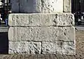 Benchmark on the plinth of the statue of King Charles I in Trafalgar Square, London: the site of the medieval Charing Cross, and the point from which distances from London are calculated