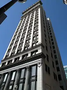 Benedum–Trees Building located at 223 Fourth Avenue in downtown Pittsburgh, Pennsylvania, was built in 1905. The building was commissioned by Caroline Jones Machesney, the daughter and sole heir of a Pittsburgh banker, making it the first skyscraper in the city ordered by and built for a woman.[2] It was originally called the Machesney Building until 1913, when Machesney sold it for $10 million to two local men who had gotten rich drilling for oil, Joe Trees and Mike Benedum.[3] For the next 40 years, the fifteenth floor was home to their offices.