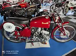 In the beginning, it was just the Benelli Garage, which repaired bicycles and motorcycles, but was already able to produce all of the spare parts needed for repairs.[1] During World War I, Benelli worked hard fixing parts for the Italian machines in war and in 1919 the first motorcycle was presented to the public. In 1920 the company built its first complete engine in-house, a single-cylinder two-stroke 75 cc model, immediately adapted to a bicycle frame. A year later in 1921, Benelli built its first motorcycle, using their own engine which had by then become a 98 cc model.