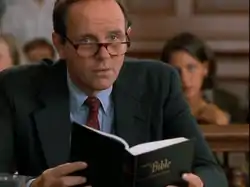 Stone's prosecutorial methods are portrayed as being grounded in moral principles stemming from his Catholic faith. He is shown to be anti-abortion[5] and opposed to the death penalty.[6] He also is a strong advocate of social justice, having marched in the civil rights movement.[7] It is implied that Stone, like actor Moriarty, is a Dartmouth College alumnus, with references to "fraternity row" and New Hampshire. Stone is also likely a graduate of New York University Law School, evidenced by the diplomas on his wall in several episodes.[8]