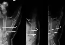 If intraarticular trapeziometacarpal fractures (such as the Bennett or Rolando fractures) are allowed to heal in a displaced position, significant post-traumatic osteoarthritis of the base of the thumb is virtually assured.[5] Some form of surgical treatment (typically either a CRPP or an ORIF) is nearly always recommended to ensure a satisfactory outcome for these fractures, if there is significant displacement.