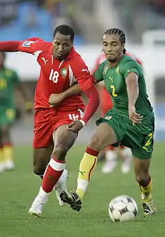 Assou-Ekotto made his debut for Cameroon against Guinea in a friendly match on 11 February 2009.[21] He also played the full 90 minutes in Cameroon's 1–0 surprise 2010 FIFA World Cup Qualifying defeat to Togo on 28 March 2009. He was named in Cameroon's 2010 Africa Cup of Nations squad but was forced to withdraw prior to the tournament due to injury. Assou-Ekotto was also named in Paul Le Guen's final 23-man roster for the 2010 World Cup in South Africa and played every minute of Cameroon's three matches.[22]