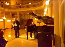 From January 2008, begins the tour of poetry and music it:Anche ora che la luna.[9] Initially, in Salento with the composer Giovanni Renzo at the piano, after alone and performing throughout Italy in places like the Literary Cafe in Rome and the Civic Theatre in Sassari. This tour[10] will continue up to 2011.