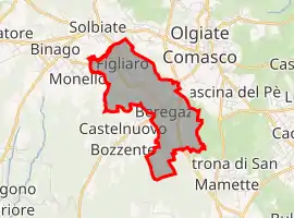 Beregazzo con Figliaro (Comasco: Beregazz con Fiee [bereˈɡats kũ fiˈ(j)eː]) is a comune (municipality) within the Province of Como, Lombardy, Italy. The municipality is located about 35 kilometres (22 mi) northwest of Milan and about 11 kilometres (7 mi) southwest of Como. As of 31 December 2004, it had a population of 2,387 and an area of 3.8 square kilometres (1.5 sq mi).[3]