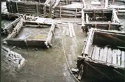 The Berestye Archeological Museum, located in the city of Brest, Belarus, is a museum centered around an archaeological site displaying an authentic East Slavic wooden town dating back to the 13th century. Unique in Europe, the 1800 square meter site was excavated by archeologists of the Belarusian Academy of Sciences between 1968 and 1981. The project was supervised by Dr. P.F.Lysenko. In 1982, a modern structure of concrete, glass and aluminum in the shape of a huge pitched roof was erected over the archeological site. The museum was opened on March 2, 1982. The museum displays preserved 28 log cabins, as well over 1400 artifacts dating back to 10th and 14th centuries which were unearthed during the excavation.