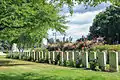 The cemetery extension was significantly enlarged in 1930 when it became clear that Rosenberg Chateau Military Cemetery and Rosenberg Chateau Military Cemetery Extension, located approximately one kilometre away, could not be acquired in perpetuity and the graves were moved to the Berks Cemetery Extension.[2] The current appearance of the cemetery was designed by Harold Chalton Bradshaw, who also designed the Cambrai Memorial in France.[3]