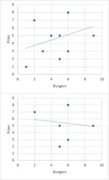 The most common example of Berkson's paradox is a false observation of a negative correlation between two desirable traits, i.e., that members of a population which have some desirable trait tend to lack a second. Berkson's paradox occurs when this observation appears true when in reality the two properties are unrelated—or even positively correlated—because members of the population where both are absent are not equally observed. For example, a person may observe from their experience that fast food restaurants in their area which serve good hamburgers tend to serve bad fries and vice versa; but because they would likely not eat anywhere where both were bad, they fail to allow for the large number of restaurants in this category which would weaken or even flip the correlation.