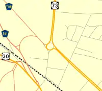 The Berlin Circle was a traffic circle in Berlin Township, New Jersey, United States located at the intersection of Route 73, Berlin-Cross Keys Road and Walker Avenue, and which also received traffic from nearby U.S. Route 30, and County Route 561. The New Jersey Department of Transportation (NJDOT) began replacement of the circle in August 2006.[1] The project cost $73 million. The circle was replaced with an at-grade intersection with traffic signals.[2] The project was completed in 2007.