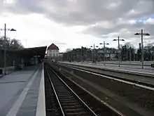 . The station consists of one island platform which is in regular use, as well as four further terminal island platforms which are only used for the extra trains during major events.