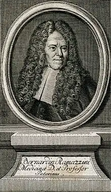 Bernardino Ramazzini (Italian pronunciation: [bernarˈdino ramat'tsini]; 4 October 1633 – 5 November 1714) was an Italian physician.