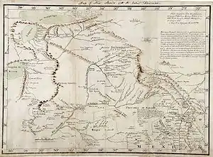 Though Menchero was unsuccessful, Miera produced the first map of the territory they traversed.[2] In 1749, he mapped the Rio Grande from El Paso downstream to its junction with the Rio Conchos.[2][4]