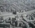 Aerial view of Bernauer Straße showing the Wall and the "Death strip" behind the Wall inside East Berlin. Just inside East Berlin is the Versöhnungskirche or Church of Reconciliation which was later demolished.