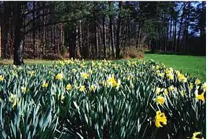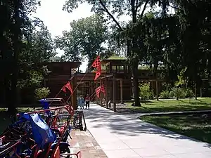 Generally speaking, the property is divided into two areas—the arboretum and the natural area. The arboretum features formal and informal plant collections and various modern facilities, including handicapped accessible restrooms. Other arboretum features include numerous walking paths; a visitors' center, cafe, and gift shop; education center; a newly renovated children's play area and an inter-generational shelter, The Grisby Shelter, and four lakes. The natural area contains most of Bernheim's hiking trails, and is primarily a beech-maple forest with access via paved roads. There are over 35 miles (56.3 km) of hiking trails and scenic fire-roads, including the 13.3 mile (21.4 km) Millennium Trail and the 3.2 mile (5.1 km) paved Hike-Bike Pike. One short trail, the aptly named Fire Tower Loop, leads to a metal observation tower that is often open to climb via stairs. There is also a canopy walk which extends off a cliff and places the viewer above the trees and sharing a wonderful vista. Hiking trails range in difficulty from "casual" short walks to strenuous jaunts designed for "the more serious hiker," per Bernheim's website.[1] The Millennium Trail is by far the longest and most challenging; as a result Bernheim asks that hikers set out before certain times in the morning (the deadline varies by season), as well as register at the visitor's center prior to starting the hike. In 2005, a hiker died of a heat stroke while attempting to complete the Millennium Trail.[2]