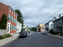 Main Street was created in 1819 and has numerous buildings dating back to the nineteenth century, including the Cyrus G. Blatt home (501-503 N. Main), the Eagle Hotel (301 N. Main) and the Joseph B. Conrad home (219 N. Main).[9] Main Street is also the location of both churches: St. Thomas's UCC, and Evangelical Lutheran Friedens Church. The churches are located across the street from each other.