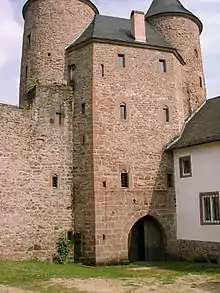 Rear of the towers of the Bertradaburg in Mürlenbach, Germany