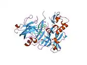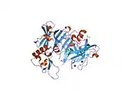 Beta-secretase 1, also known as beta-site amyloid precursor protein cleaving enzyme 1, beta-site APP cleaving enzyme 1 (BACE1), membrane-associated aspartic protease 2, memapsin-2, aspartyl protease 2, and ASP2, is an enzyme that in humans is encoded by the BACE1 gene.[5] Expression of BACE1 is observed mainly in neurons.