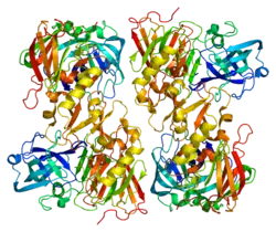 Beta-secretase 2 (EC 3.4.23.45, also known as Memapsin-1) is an enzyme[5][6][7][8] that cleaves Glu-Val-Asn-Leu!Asp-Ala-Glu-Phe in the Swedish variant of Alzheimer's amyloid precursor protein. BACE2 is a close homolog of BACE1.