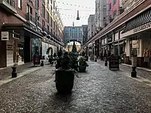 Federal Realty Investment Trust has developed much of the west side of downtown Bethesda into an area called Bethesda Row, incorporating principles of new urbanism and a mixed-use district including residential apartments and condos (100,000 ft2), retail (300,000 ft2), dining, office space (100,000 ft2), hotels, entertainment, public art and fountains, forming the new core of the revitalized Downtown.[22] Retail stores include an Apple Store, Amazon Books,[23] Anthropologie, and popular bagel store Bethesda Bagels.