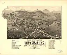 Granted as "Lloyd's Hills" in 1774 by colonial Governor John Wentworth, the town was named for James Lloyd of Boston. It was the last of the provincial grants in New Hampshire. In the aftermath of the Revolutionary War, the original grant could not be found. Lack of documentation deterred settlement until 1787, when the first permanent houses were built. Dropping its homage to Lloyd, a Loyalist, the town was incorporated as "Bethlehem" on December 27, 1799, the name having been selected on Christmas Day. There were just 33 families, with agriculture the only industry.