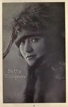 This page has most if not all of Betty Compson's (March 19, 1897 – April 18, 1974) known film appearances 1915–48. Films from 1915 to 1919 are shorts, mostly for Al Christie unless otherwise stated. A big breakout came in 1919 with The Miracle Man now lost. In the early-to-mid 1920s Compson was a major player at Paramount with her name above the title of her films. By the end of the decade she was free-lancing and appearing as feature and support with name below the title of the film. Her star definitely took a fall somewhere after marrying director James Cruze, and she would remain a feature support into the sound era for the rest of her film career.