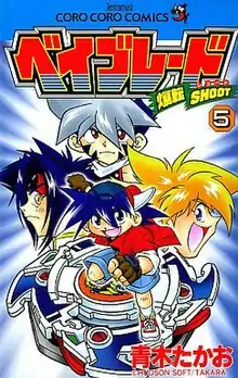 Beyblade, known in Japan as Explosive Shoot Beyblade (Japanese: 爆転シュートベイブレード, Hepburn: Bakuten Shūto Beiburēdo), is a Japanese manga series written and illustrated by Takao Aoki to promote sales of spinning tops called "Beyblades" developed by Takara Tomy. The series focuses on a group of kids who form teams, which battle one another using Beyblades. Originally serialized in Shogakukan's CoroCoro Comic from September 1999 to July 2004, the individual chapters were collected and published in 14 tankōbon volumes and was licensed for English-language release in North America by Viz Media.