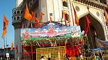 Bhagyalakshmi temple is a Hindu temple located in Hyderabad, India. This temple is located adjacent to the city's historic monument Charminar. Charminar is under care of Archaeological Survey of India (ASI), while a Hindu trust manages the temple dedicated to the Goddess Lakshmi. The origin of the temple is currently disputed and the current structure that houses the idol was erected in the 1960s. In 2012, Telangana High Court stopped any further expansion of the temple.[1] In 2013, ASI declared the temple structure as an unauthorised construction.[2]