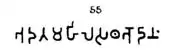 The inscription at the top, classified as Inscription 55 in the Pillars of Railing of the SW Quadrant at Bharhut (The Stupa of Bharhut, Cunningham, p. 136 ), is in the Brahmi script and reads from left to right: