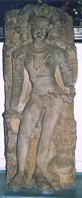 Bhikshatana (Sanskrit: भिक्षाटन; Bhikṣāṭana; literally, "wandering about for alms, mendicancy"[1]) or Bhikshatana-murti (Bhikṣāṭanamūrti) is an aspect of the Hindu god Shiva as the "Supreme mendicant"[2] or the "Supreme Beggar".[3] Bhikshtana is depicted as a nude four-armed man adorned with ornaments who holds a begging bowl in his hand and is followed by demonic attendants.