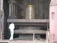 Bhojpur is famous for the incomplete Bhojeśvar temple dedicated to Shiva. The site is under the protection of the Archaeological Survey of India as a monument of national importance. The temple houses one of the largest liṅga-s in India, 5.5 m (18 ft) tall and 2.3 m (7.5 ft) in circumference. It is crafted out a single rock.[6] The liṅga was repaired by the Archaeological Survey of India who also added a roof over the top to prevent weather damage.