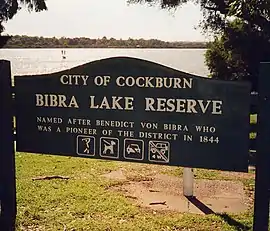 In 1877, it was found the von Bibra's association with Lake Walliabup was apparently still recalled by locals who referred to the feature as Bibra's Lake. This alternative name was added to plans and, in 1967, adopted in place of the Aboriginal name. In 1898 Bibra Lake was reserved for recreation and all applications to lease land were strenuously opposed by the Fremantle District Roads Board, which was given control of the reserve in 1902. Tearooms were erected and the Reserve became a popular venue for picnics and sports gatherings.[5]