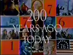The videotaped segments were each one minute long and were broadcast each night during prime time hours, generally at approximately 8:27 or 8:57 P.M. Eastern time.[1] The format of the segments did not change, although each segment featured a different narrator, often a CBS network television star. The narrator, after introducing himself or herself, would state "This is a Bicentennial Minute," followed by the phrase "Two hundred years ago today..." and a description of a historical event or personage prominent on that particular date two hundred years before during the American Revolution. The segment would close with the narrator saying, "I'm (his/her name), and that's the way it was." This was an offhand reference to the close of the weeknight CBS Evening News with Walter Cronkite, who always ended each news telecast by saying, "And that's the way it is."