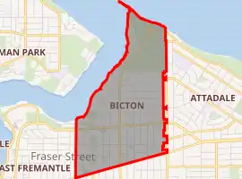 Bicton is an affluent riverside suburb of Perth, Western Australia, located 10 kilometres (6.2 mi) south-west of the central business district. The suburb is mostly residential, and falls within the City of Melville local government area. Bicton borders the Swan River to the north, with the northern third of the suburb taken up by a Class-A reserve at Point Walter.