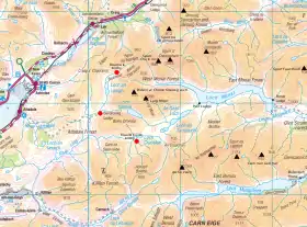 Maol Bhuidhe bothy is an MBA bothy which can be reached from Atterdale or Killian (Camus-luinie carpark) on mountain bike by tracks at least 16 km (10 mi) long.[27][23]
