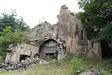 The Bieti church of the Mother of God (Georgian: ბიეთის ღვთისმშობლის ეკლესია, romanized: bietis ghvtismshoblis ek'lesia) is a ruined Georgian Orthodox church in the Akhaltsikhe Municipality in Georgia's south-central region of Samtskhe-Javakheti. Dated to the latter half of the 14th century, the Bieti church was built in a domed cross-in-square plan. After the dome collapsed in 1930, only the conch of the sanctuary and pastophoria remained standing. After some preparatory cleaning and conservation works, reconstruction was commenced in 2019. The church is inscribed on the list of Georgia's Immovable Cultural Monuments of National Significance.[1] There is another medieval Georgian church known as Bieti situated in what is now the disputed territory of South Ossetia.[2]