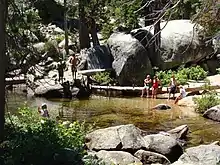 Big Creek (Big Creek Flats in the 1870s; Manzanita Park in 1902; until 1926, Cascada)[3] is a small census-designated place[4] in Fresno County, California, located in the Sierra Nevada on the north bank of Big Creek. It lies at an elevation of 4,984 feet (1,519 m) above sea level.[2] Its last population count was 175. The ZIP code is 93605, and the community is inside area code 559.