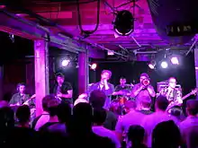 Big D and the Kids Table is a ska punk band formed in October 1995 in Boston, Massachusetts when its members converged in college.[1] Their first release was on their own Fork in Hand Records label,[2] but have since teamed with Springman Records and SideOneDummy. The band has been noted for its strict DIY work ethic,[3] such as engineering, producing, and releasing their own albums and videos and self-promotion of their own shows.[1]