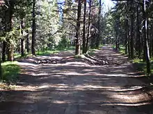 Big Hole Pass (elevation: 7,055 feet (2,150 m)) is a high mountain pass on the Montana–Idaho border approximately 8 miles (13 km) due south of Montana State Highway 43 in the Beaverhead–Deerlodge National Forest in Beaverhead County, Montana,[1] and Salmon National Forest in Lemhi County, Idaho. This location should not be confused with a sign on Montana Highway 278 at the height of land west of Dillon, Montana, that denotes the eastern entrance to the Big Hole valley.[2][3] The Continental Divide Trail goes over this pass, which is about 11 miles (18 km) south-southeast of the more famous Chief Joseph Pass. The pass can be approached on a Forest Service road, Dahlonega Creek Road (079), from the west or Forest Service Road #943 from Highway 43 from the east.[4] On their return trip the Lewis and Clark Expedition separated at Traveler's Rest in modern-day Montana. On July 3, 1806, Meriwether Lewis headed north to explore the Marias River, while William Clark headed up the Bitterroot River with 50 men, Sacagawea and her baby. They crossed Big Hole Pass on their way to their cache of supplies at Camp Fortunate.[5]