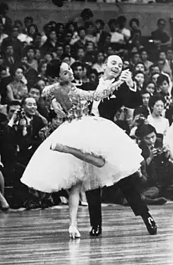 Bill Irvine(30 January 1926 – 13 February 2008) and Bobbie Irvine (27 July 1932 – 30 May 2004)[1] were British professional ballroom dancers. Bobbie Irvine was born Bobbie Barwell in Oudtshoorn, South Africa, while Bill Irvine, born William, was from Low Craigends in Kilsyth. His father was a miner, as was his grandfather, and Bill served in the Royal Navy before starting his dance career. As a young dance teacher he spent a period in South Africa, which led to his meeting Bobbie. They were married in 1957.[2] The pair became South African champions, and later settled in London.