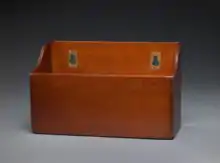An original senate bill hopper dating from around 1817 is on display in the Old Senate Chamber. It is part of the collection of the Smithsonian Institution. The senate bill hopper had shelves as opposed to the 'bucket' shaped construction of the congressional hopper. The spaces between the shelves of the senate bill hopper shorten with height such that the top shelves are narrower than the bottom ones; it is believed that this is because so few bills became legally enacted.[1][4] A congressional bill hopper dating from the early 1950s is in the art collection of the House of Representatives; it was retired in 2004. It was situated next to the desk of the Clerk of the House of Representatives in the Chamber of the House of Representatives.[2]