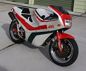The Bimota DB1 was a motorcycle manufactured by Bimota between 1985 and 1990 in Rimini, Italy. Originally commissioned by Cagiva, the DB1 was designed by Bimota's Technical Director, and ex-Ducati engineer, Dr. Frederico Martini, and it saved Bimota from almost certain bankruptcy. DB1 stands for Ducati Bimota One, i.e. the first Bimota powered by a Ducati engine compared to, say, the SB3 - Suzuki, Bimota, third design.[12][13]