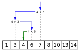Binary search in a sorted array, an algorithm whose time complexity involves binary logarithms