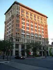 The city was the traditional economic center of the region and is home to several historic districts. The Railroad Terminal Historic District consists of several factories and buildings along the railroad line in the northern limits of downtown.[40] Over 1,000 properties on the West Side contribute to the Abel Bennett Tract Historic District, mainly made up of residential properties along Riverside Drive.[41] Downtown's State Street-Henry Street Historic District consists of several older low-rise buildings.[42] The Court Street Historic District has some of the city's most notable architecture, including the Press Building and Security Mutual Building, early 20th century high rises, and the Broome County Courthouse.[43] The Press Building was the tallest building in Binghamton until the completion of the State Office Building in Government Plaza, which remains the tallest in the city.[44]