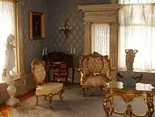Across the Chenango River lies the West Side, a primarily residential neighborhood along the banks of the Susquehanna that has a combination of family homes, student housing, and stately mansions. Main Street's large supermarkets, pharmacies, bank branches, pubs, restaurants, auto shops, and a few strip malls form the West Side's commercial corridor.[50] The First Ward, a largely residential neighborhood opposite the railroad tracks from the West Side, is best known for Antique Row, a series of antique shops that line Clinton Street. This part of the city is home to several gold-domed Christian churches built by the area's many Eastern European immigrants.[51] It is also home to several large supermarkets, churches, pharmacies, bank branches, a few bars and restaurants as well as mom and pop shops that provide such goods as video games and music. Ely Park, Binghamton's northernmost neighborhood, contains its municipal golf course.[52] It lies on parts of Prospect Mountain and other hills north of the First Ward.