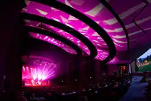 This theater complex has three stages: Watters Theater, seating 550; the Chamber Hall, seating 450; and the Osterhout Concert Theater, seating 1,200. The concert theater has the ability to become an open-air venue, with its movable, floor-to-ceiling glass windows that open up to a grassy hill. The Anderson Center has hosted performers such as the Russian Symphony and Ballet, the Prague National Symphony and the Shakespearian Theater Company. In March 2006, an overflow house, filling all of the Anderson Center's theaters, was present to hear guest speaker Noam Chomsky.
