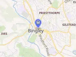 Bingley railway station is a grade II listed[1] railway station that serves the town of Bingley in West Yorkshire, England, and is 13.5 miles (21.7 km) away from Leeds and 5.5 miles (8.9 km) away from Bradford Forster Square on the Airedale line operated by Northern Trains.