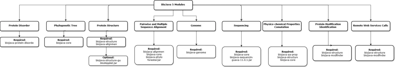 The following sections will describe several of the new modules and highlight some of the new features that are included in the latest version of BioJava.