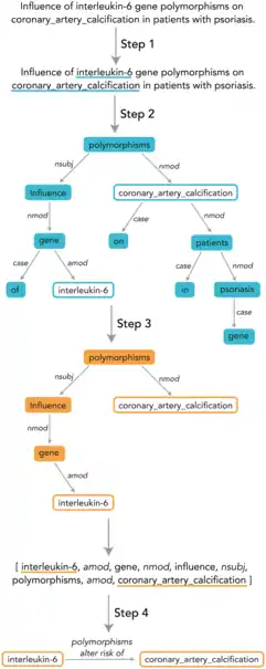 Natural-language processing and text mining technologies can help biocurators to extract of information for manual curation.[73] Text mining can scale curation efforts, supporting the identification of gene names, for example, as well as for partially inferring ontologies.[74][75] The conversion of unstructured assertions to structured information makes use of techniques like named entity recognition and parsing of dependencies.[76] Text-mining of biomedical concepts faces challenges regarding variations in reporting, and the community is working to increase the machine-readability of articles.[77]