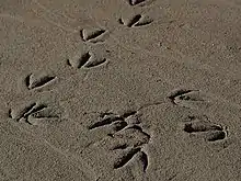 - Similar footprints, now lost, were reported from roughly contemporary strata in France in the 19th century: Buffetaut, Eric (2004). "Footprints of Giant Birds from the Upper Eocene of the Paris Basin: An Ichnological Enigma". Ichnos. 11 (3–4): 357. doi:10.1080/10420940490442287.